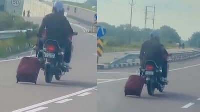 वीडियो में साफ दिख रहा है कि एक आदमी बड़े आराम से बाइक चला रहा है और उसके पीछे, ज़मीन पर, एक ट्रॉली बैग उसके साथ-साथ चल रहा है। यह दृश्य बिल्कुल ऐसा लग रहा था, जैसे वह एक्सप्रेसवे को रेलवे प्लेटफॉर्म समझकर सफर कर रहा हो। यह शायद अपनी तरह का पहला मामला होगा जब किसी ने ऐसी अनोखी तरकीब अपनाई हो।