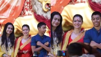 दुर्गा पूजा में काजोल का पारंपरिक लुक, बच्चों के साथ खास पल..